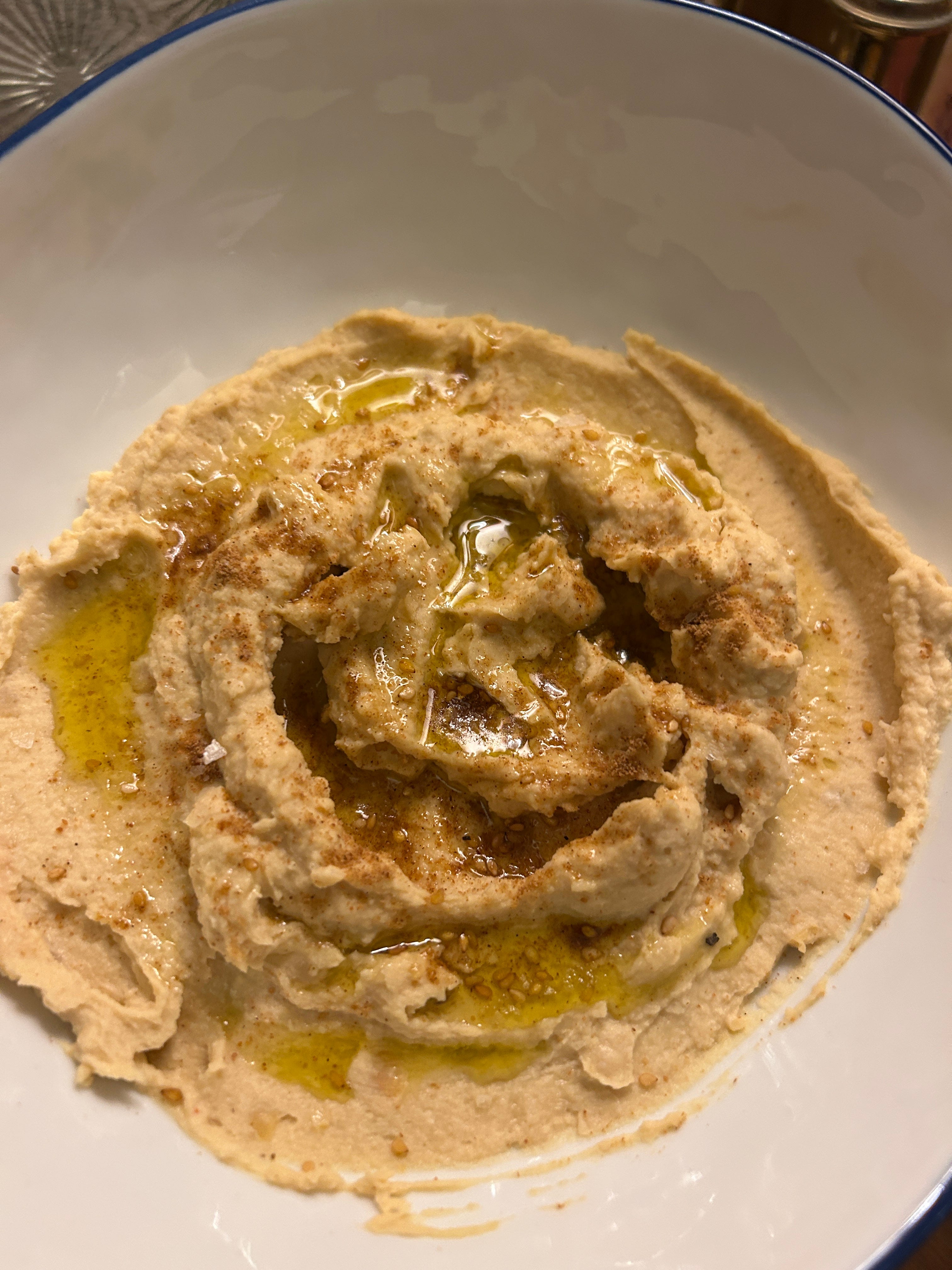 Homemade hummus with olive oil and za’atar. Highly recommend!