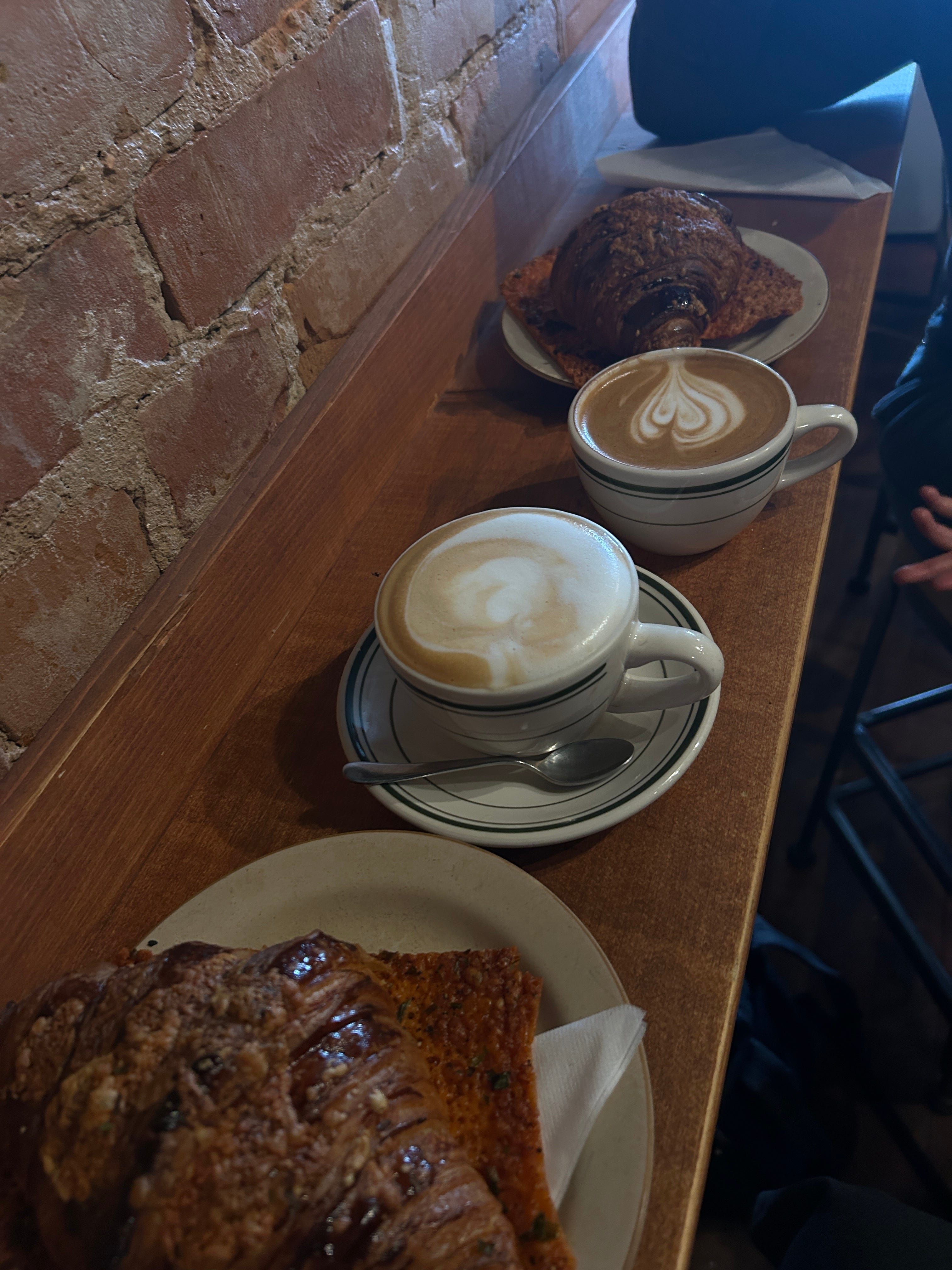 Best cappuccino in the city! Larry’s! So fluffy and perfect, and DECAF! Paired with their insane cheese croissant!