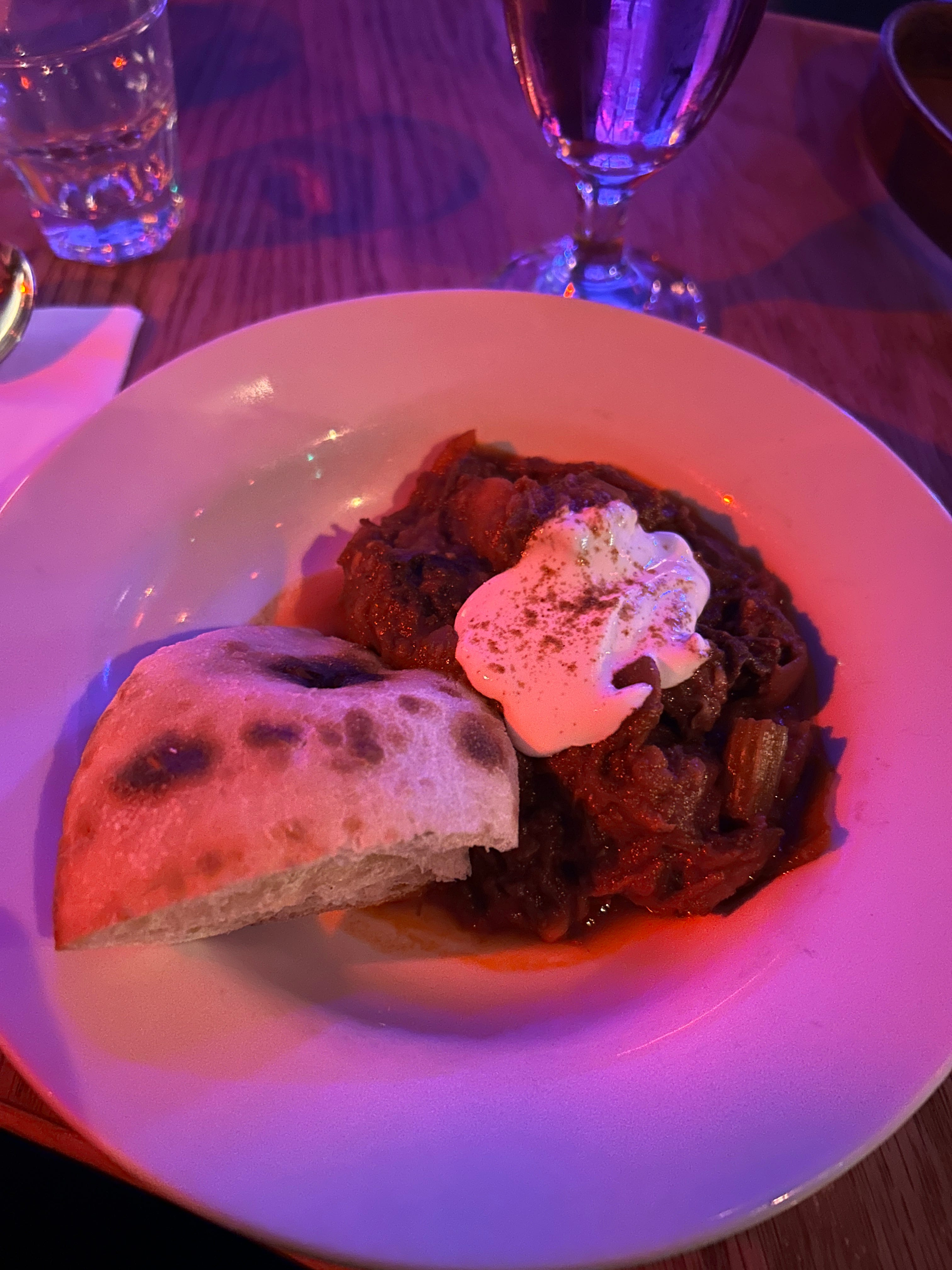 Goulash at Drom. This is the half portion. Very nice! What fun to have some goulash and watch your friend play music!