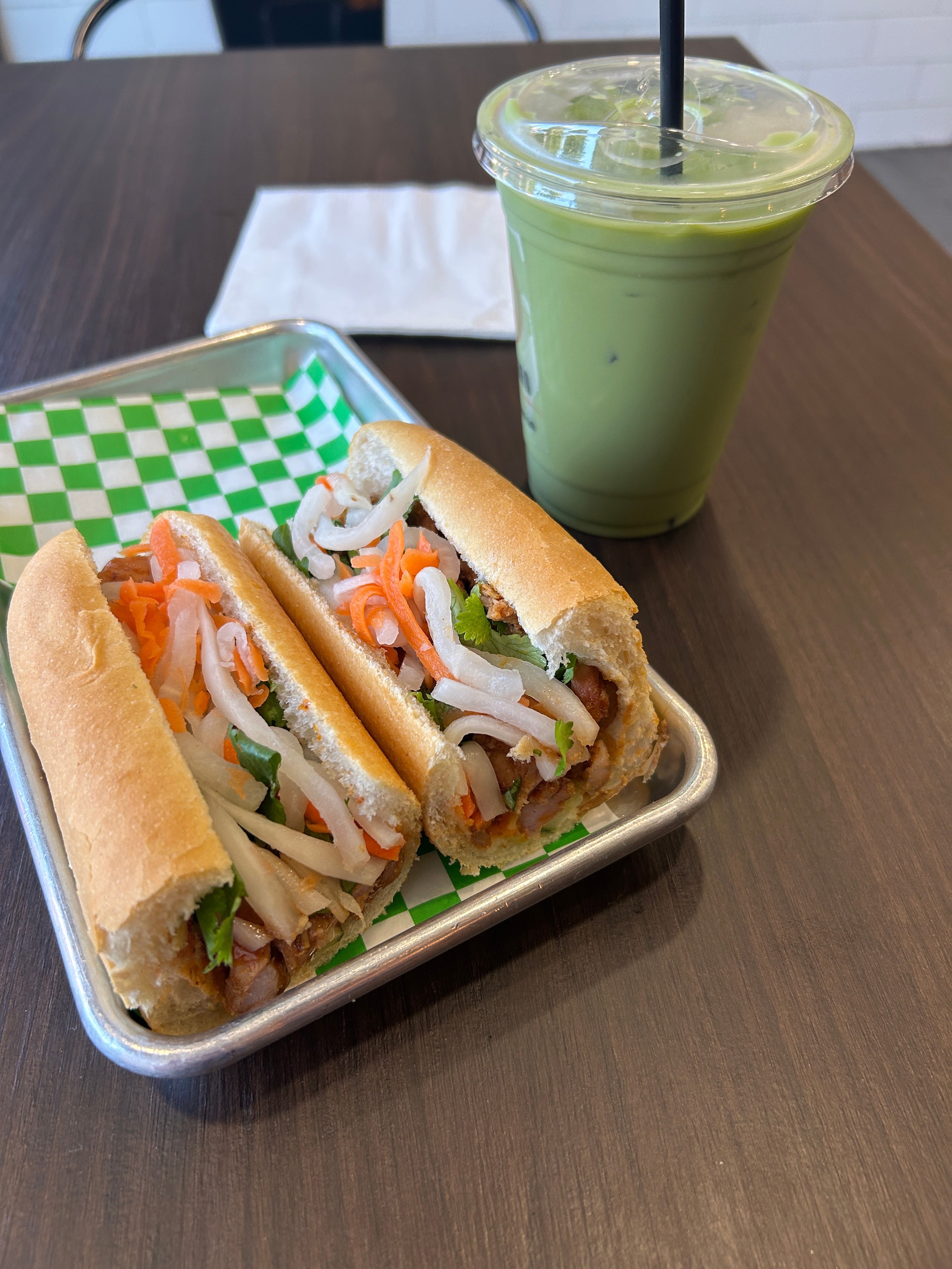 Lamhan lemongrass chicken banh mi and green thai iced tea. Perfection.